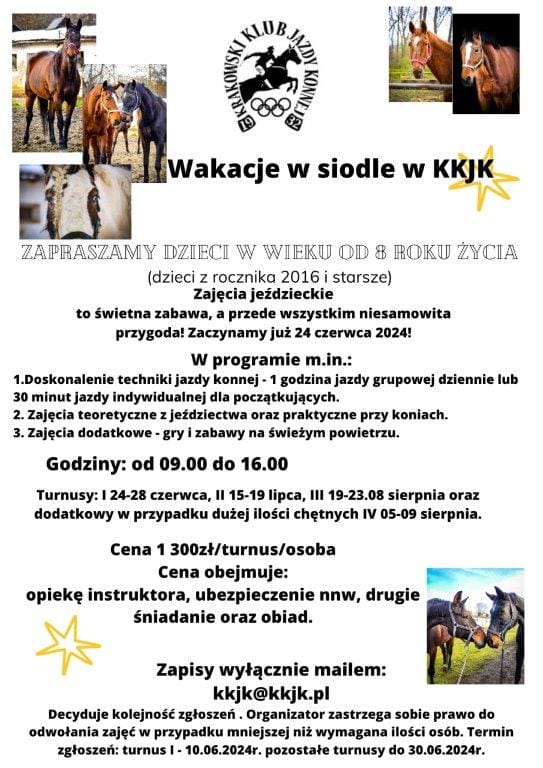 Serdecznie zapraszamy na Wakacje w Siodle w Krakowskim Klubie Jazdy Konnej